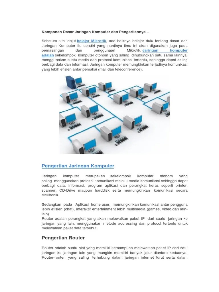 Pengertian, sejarah, jenis, ciri, manfaat, tujuan, komponen, keuntungan dan kerugian. Personal computer (pc), network interface card (nic), kabel dan topologi jaringan. ※ network fundamentals ※ ※ membangun jaringan lan ※ ※ mikrotik ※ daftar isi. Secara khusus pembahasan dalam makalah ini diatur sedemikian rupa sehingga materi yang disampaikan sesuai dengan tugas Memahami pengertian jaringan komputer · menskalakan perangkat keras dan perangkat lunak ke kecepatan yang sangat tinggi (mis., 100+ gbps) (router .